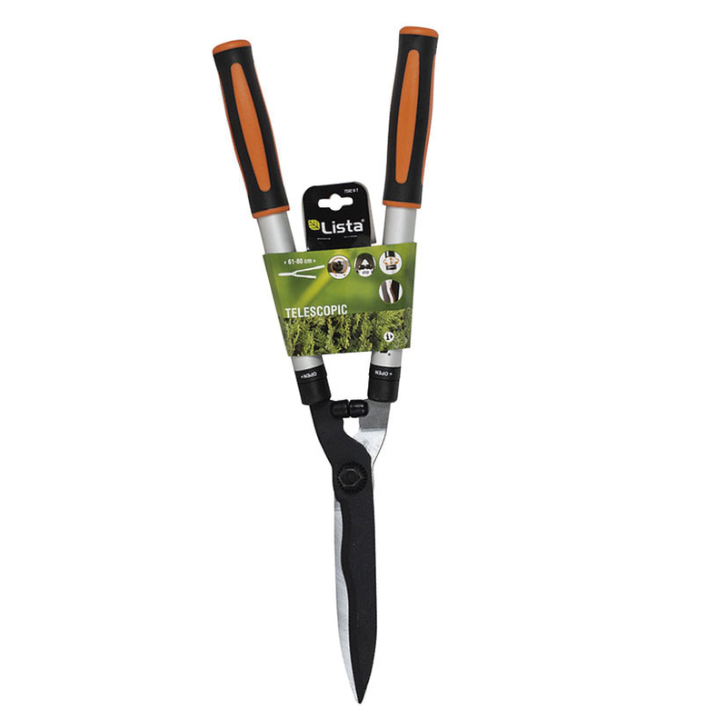 La Tijera cortasetos brazos telescópicos 61-80 cm LISTA está diseñada para facilitar la poda de mantenimiento y renovación en setos de todo tipo. Gracias a sus brazos tubulares telescópicos de aluminio, permite llegar a zonas más altas o ejercer mayor presión en el corte cuando se necesita.